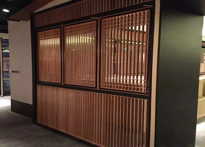 杭州綠茶餐廳中式木紋鋁窗花
